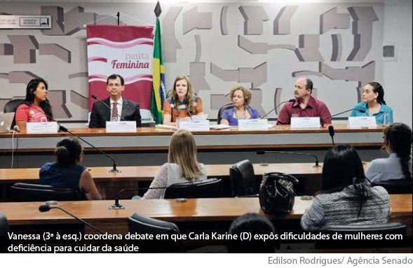 As dificuldades de as mulheres deficientes fazerem a mamografia foram tema de um debate promovido pela Procuradoria da Mulher do Senado, como parte da programação do Outubro Rosa. Foi lá que Carla contou sua história.