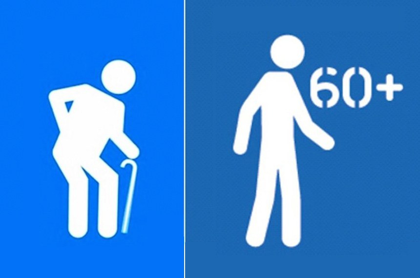 Um movimento na internet, contrário ao pictograma com a bengala para os idosos, iniciou uma campanha para modificar essa imagem. A empreitada coletiva acabou com a elaboração de um novo desenho, uma figura mais altiva, ao lado da inscrição “60+”. A nova imagem foi divulgada em 1º de outubro de 2016, quando se comemora o “Dia do idoso”, e apresentada à Associação Brasileira de Normas Técnicas (ABNT).