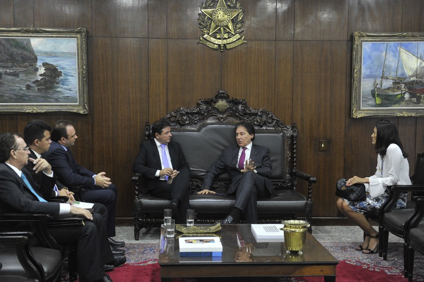O presidente do Senado, Eunício Oliveira, recebeu nesta quarta-feira (26) o prefeito de Várzea Alegre (CE), Hélder Máximo, e representantes da Associação dos Municípios do Estado do Ceará (Aprece). Durante o encontro, eles discutiram a questão da retenção de recursos do Fundo de Manutenção e Desenvolvimento da Educação Básica e de Valorização dos Profissionais da Educação (Fundeb).