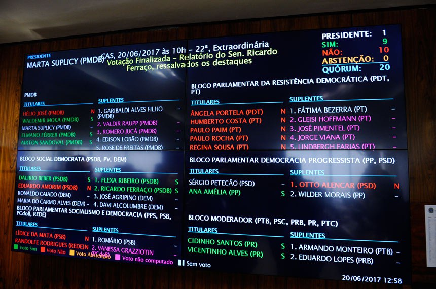 O discurso surtiu efeito, já que a base governista perdeu três votos: o senador Otto Alencar (PSD-BA), contrário à reforma, votou como suplente de Sérgio Petecão (PSD-AC), que estava ausente. Helio José (PMDB-DF) e Eduardo Amorim (PSDB-SE) foram os outros dois votantes que garantiram a rejeição do texto. O placar esperado pelo governo era de 11 votos favoráveis e 9 contrários, segundo o líder do governo, senador Romero Jucá (PMDB-RR). Ele já anunciou que manterá na CCJ o relatório anteriormente aprovado na CAE.