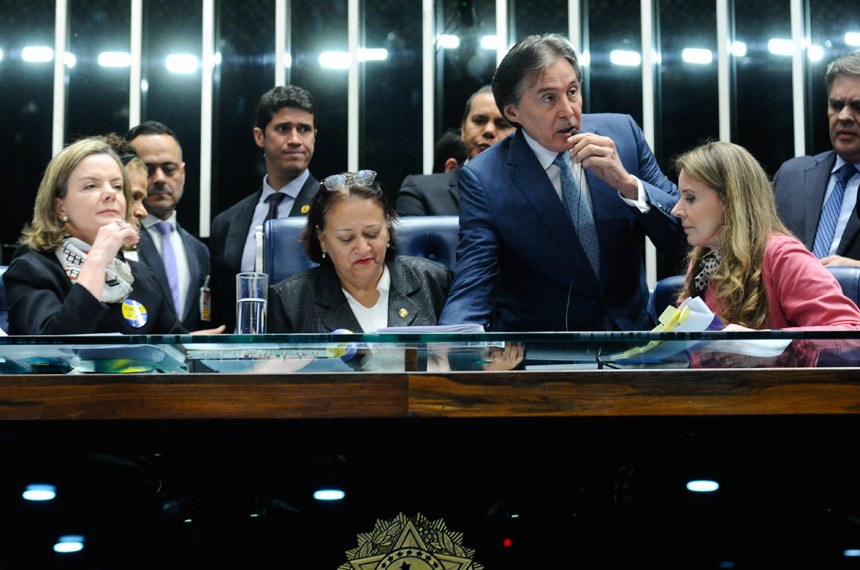 — Sempre sou de mediação. Mas você tem mulheres senadoras, com personalidades muito claras, que estão fazendo aqui um ato político. Elas entenderam chamar a atenção que está tendo um movimento de atropelo do Senado. Espero que daqui a pouco a gente possa conversar com elas. Se a intenção era ter uma atitude política, o parlamento é essencialmente político. Já vai ficar para a história uma posição política de senadoras lutadoras que estão fazendo um protesto contra esse processo legislativo de apreciar a reforma trabalhista desse jeito — afirmou.