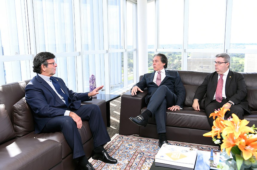 O presidente do Senado, Eunício Oliveira, reuniu-se, nesta quinta-feira (5), com o presidente do Tribunal Superior Eleitoral (TSE), Luiz Fux, para conversar sobre a segurança nas eleições deste ano. O senador Antonio Anastasia (PSDB-MG) também participou do encontro.