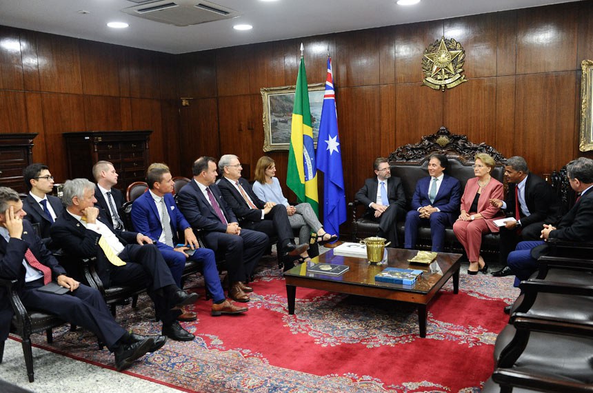O presidente do Senado, Eunício Oliveira, recebeu nesta terça-feira (10) o presidente do Senado da Austrália, Scott Ryan, e uma comitiva de parlamentares australianos, acompanhados da presidente do Grupo Parlamentar Brasil-Austrália, senadora Ana Amélia (PP-RS). O objetivo da visita é intensificar a diplomacia parlamentar, fortalecendo a cooperação entre os Legislativos e promovendo o debate de temas comuns.