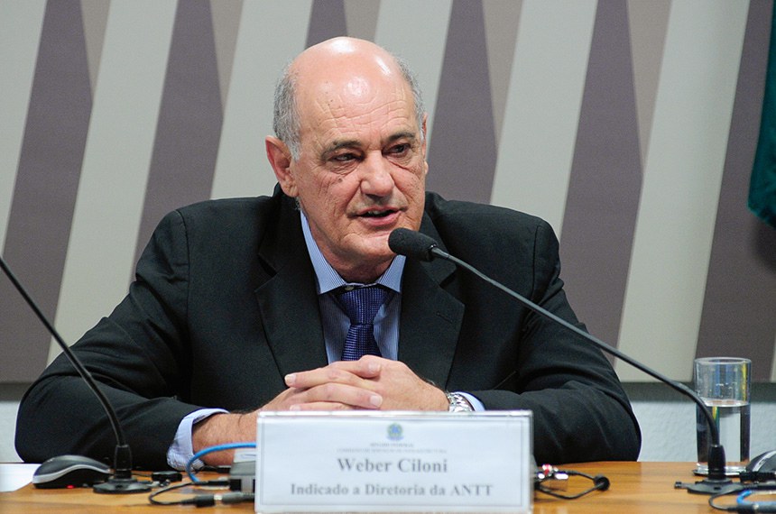 A Comissão de Serviços de Infraestrutura (CI) aprovou nesta terça-feira (22), por unanimidade, o nome do engenheiro civil Weber Ciloni, indicado para exercer o cargo de diretor da Agência Nacional de Transportes Terrestres (ANTT). Ele deverá ocupar a vaga decorrente do término do mandato de Jorge Luiz Macedo Bastos. A indicação (MSF 31/2018) segue para votação no Plenário do Senado.