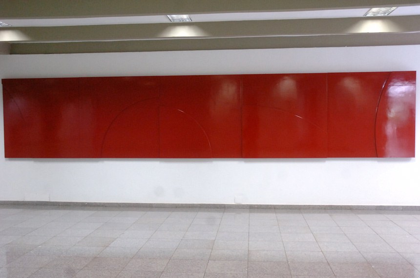 Outra obra chama a atenção dos visitantes: dois painéis vermelhos em madeira que ocupam as paredes laterais em frente à Ala Senador Teotônio Vilela, que abriga gabinetes de senadores. Um efeito de luz e sombra distingue as formas que o artista imprimiu às obras.