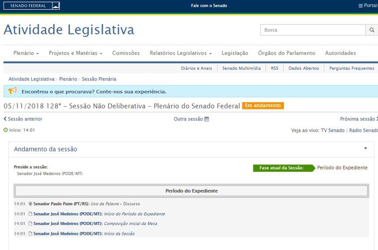 — Tudo o que acontece na sessão aparece na página: quais matérias foram apresentadas, com links; quais senadores estão com a palavra, com links para as notas taquigráficas; os itens da Ordem do Dia, com link para projetos e para os resultados da votação. E a gente está trabalhando para, no ano que vem, trazer os links dos vídeos e áudios da fala dos parlamentares, que hoje estão separados, na página do Senado Multimídia.