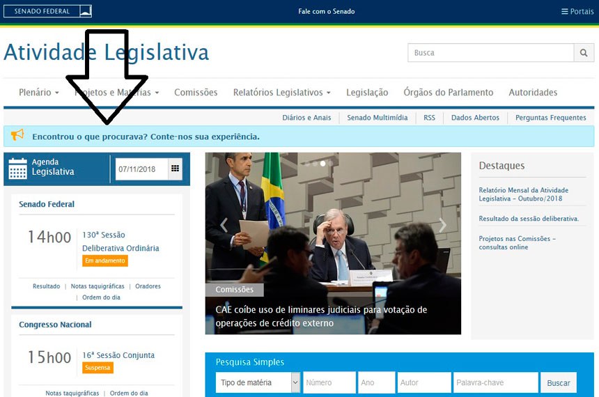 O Senado quer saber a opinião do usuário sobre o portal da Atividade Legislativa, que reúne informações, inclusive em tempo real, sobre as sessões do Plenário e do Congresso, as reuniões das comissões, os projetos em discussão e votação, as notas taquigráficas e os parlamentares inscritos para falar, entre outras.