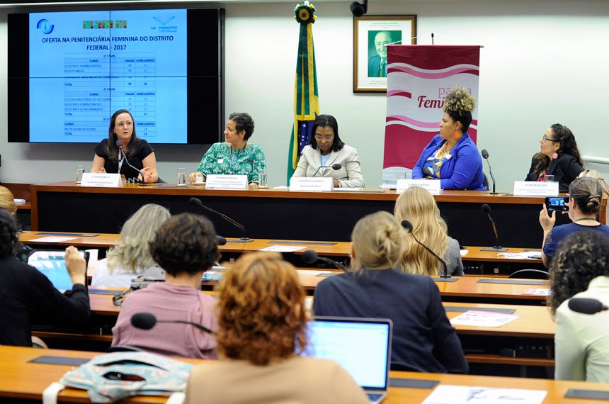 A reinserção das mulheres no mercado de trabalho foi muito debatida no encontro. O projeto “Mulheres Livres”, do Depen, procura incluí-las com apoio de empresas parceiras. Já o projeto Pronatec Prisional vem sendo implementado na Penitenciária Feminina do Distrito Federal (Colmeia) desde 2016.