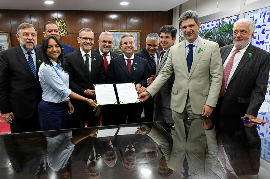 Um grupo de senadores liderados pelo presidente da Comissão de Meio Ambiente (CMA), Fabiano Contarato (Rede-ES), entregou nesta quarta-feira (29) ao vice-presidente do Senado Antonio Anastasia, a programação do Junho Verde. O mês será dedicado às causas ambientalistas, com iluminação do prédio do Senado na cor verde e com a promoção de vários debates sobre desenvolvimento, sustentabilidade, entre outros temas.