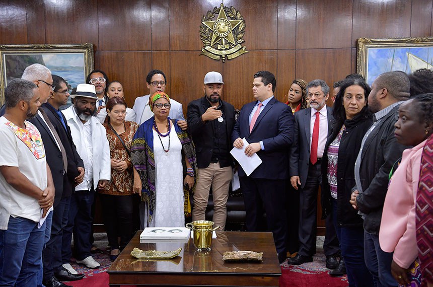 O presidente do Senado, Davi Alcolumbre, ouviu nesta quarta-feira (12) representantes de aproximadamente 45 organizações do movimento negro de todo o país contrários ao pacote anticrime e ao decreto que altera as regras para a posse e o porte de armas apresentados pelo Executivo. Liderados por Douglas Belchior, da Uneafro (União de Núcleos de Educação Popular para Negras/os e Classe Trabalhadora), e Iêda Leal, do Movimento Negro Unificado, a comitiva destacou que o sistema de justiça criminal brasileiro se vale de condutas discriminatórias, por parte da polícia e do Ministério Público, que são chanceladas pelo racismo institucional do Poder Judiciário. O presidente do Senado destacou que entende o sentimento do povo negro.