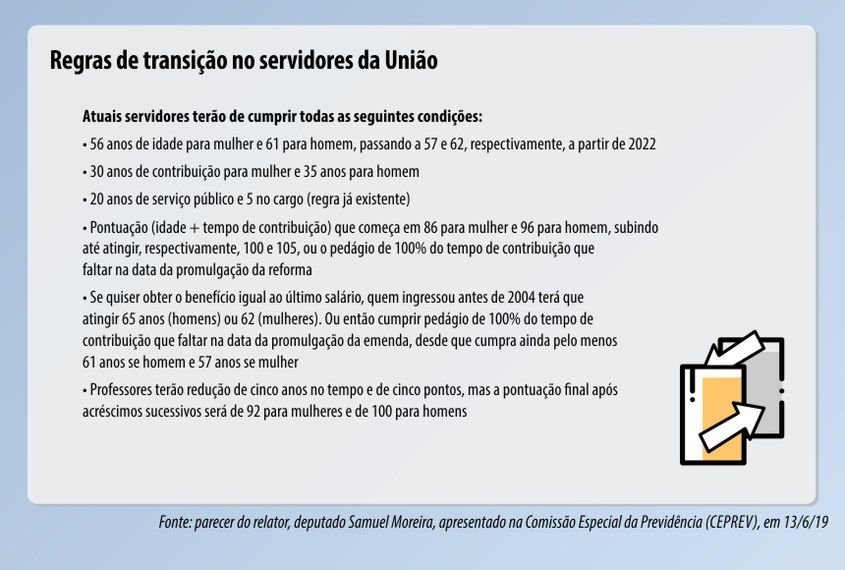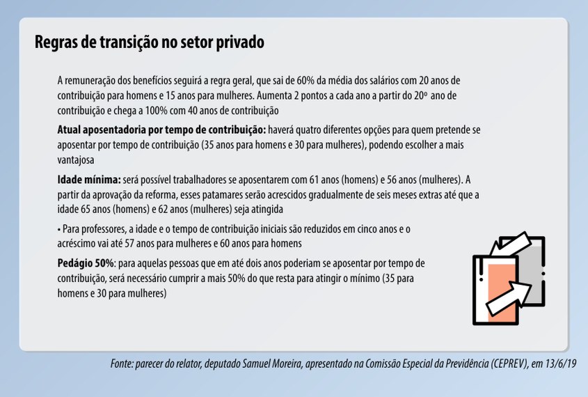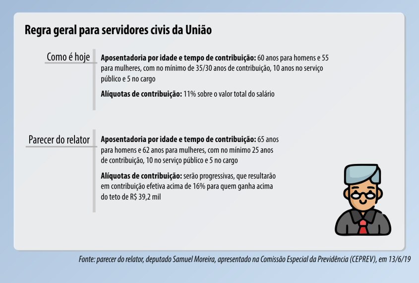 Para o governo, a proposta de reforma é considerada essencial para o equilíbrio das contas públicas e para destravar investimentos que podem aquecer a economia, gerando emprego e renda. Para isso, serão feitas várias alterações nos tempos e no valor de contribuição e também na idade mínima para a aposentadoria.
