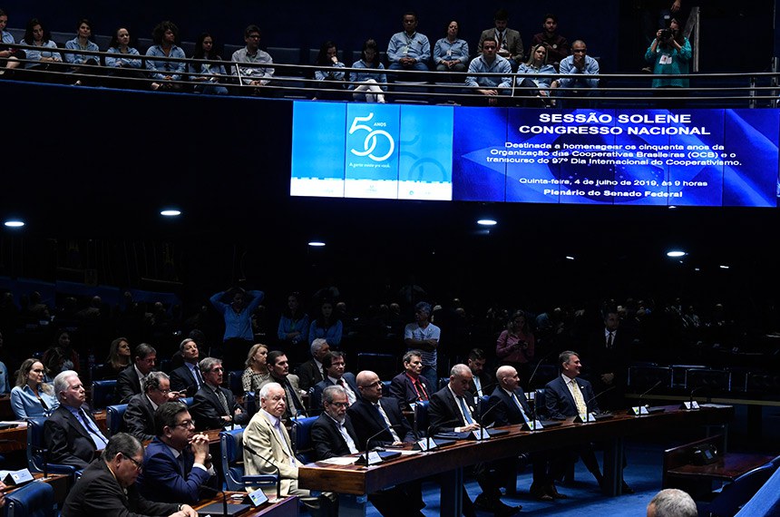 O Dia Internacional do Cooperativismo e os 50 anos da Organização das Cooperativas Brasileiras (OCB) foram celebrados em sessão solene do Congresso Nacional nesta quinta-feira (4). O sucesso do movimento cooperativista, que em 2018 gerou receitas de R$ 260 bilhões, e a certeza de que o futuro se mostra ideal para a ampliação do modelo, com seus ideais de empreendedorismo, compartilhamento e coletividade, foram ressaltados durante a sessão.