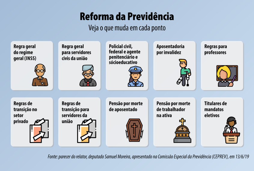 Na quarta-feira (10), a Câmara dos Deputados aprovou, em primeiro turno, o texto-base da reforma da Previdência. Estudo da Instituição Fiscal Independente apresenta os principais pontos e estima o impacto fiscal do novo formato da proposta, em comparação com a versão original (veja detalhes na galeria de imagens acima). O segundo turno deve ficar para o segundo semestre. Só depois de uma nova aprovação a proposta virá para o Senado.