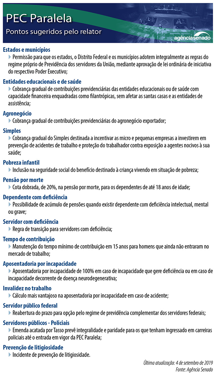 Presidente da CPI da Previdência que funcionou no Senado até 2017, Paim reconheceu avanços no texto de Tasso em relação à proposta aprovada pela Câmara, mas afirmou que o Senado não pode ser uma Casa “carimbadora”. Ele defendeu a aprovação de outros projetos no lugar da PEC 6/2019, como a PEC 24/2003, que proíbe que o dinheiro da seguridade social seja destinado para outros fins. A aprovação desse projeto foi uma das sugestões da CPI.