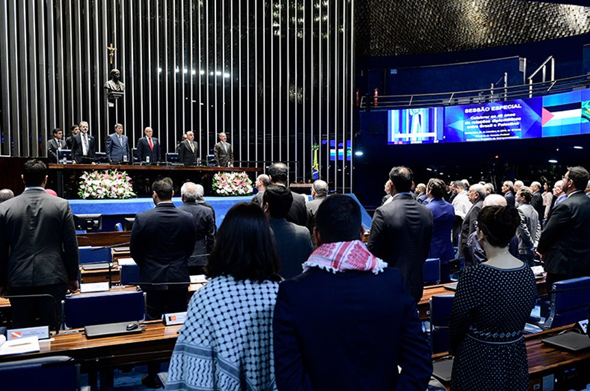 Em sessão especial para comemorar os 40 anos de relações diplomáticas entre Brasil e Palestina no Senado, o embaixador da Palestina, Ibrahim Mohamed Khalil Alzeben, relembrou o esforço do Brasil pela paz no Oriente Médio. Ele pediu que o atual governo reafirme o compromisso pela defesa do direito de autodeterminação do povo palestino.