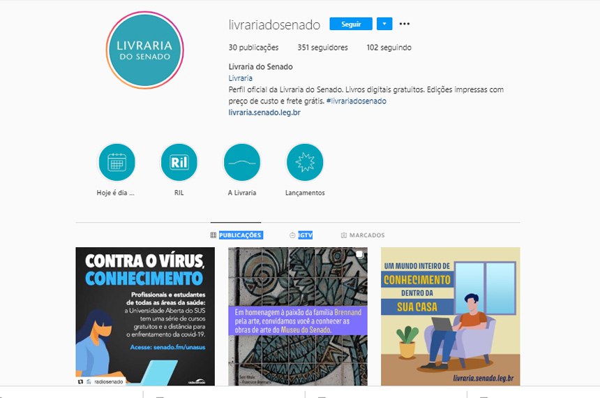 Livros digitais gratuitos são destaque no perfil da Livraria do Senado no Instagram