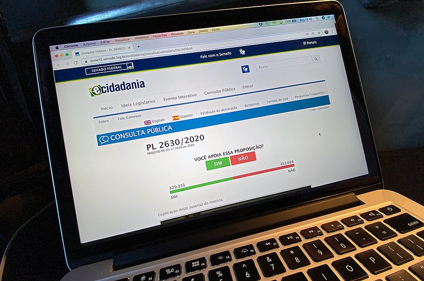 Nos últimos dias várias mensagens e vídeos circularam pelas redes sociais dizendo que o Portal do Senado estava incentivando o voto predefinido na consulta pública do projeto que cria a Lei Brasileira de Liberdade, Responsabilidade e Transparência na Internet (PL 2.630/2020). Isso é fake news, fique alerta!