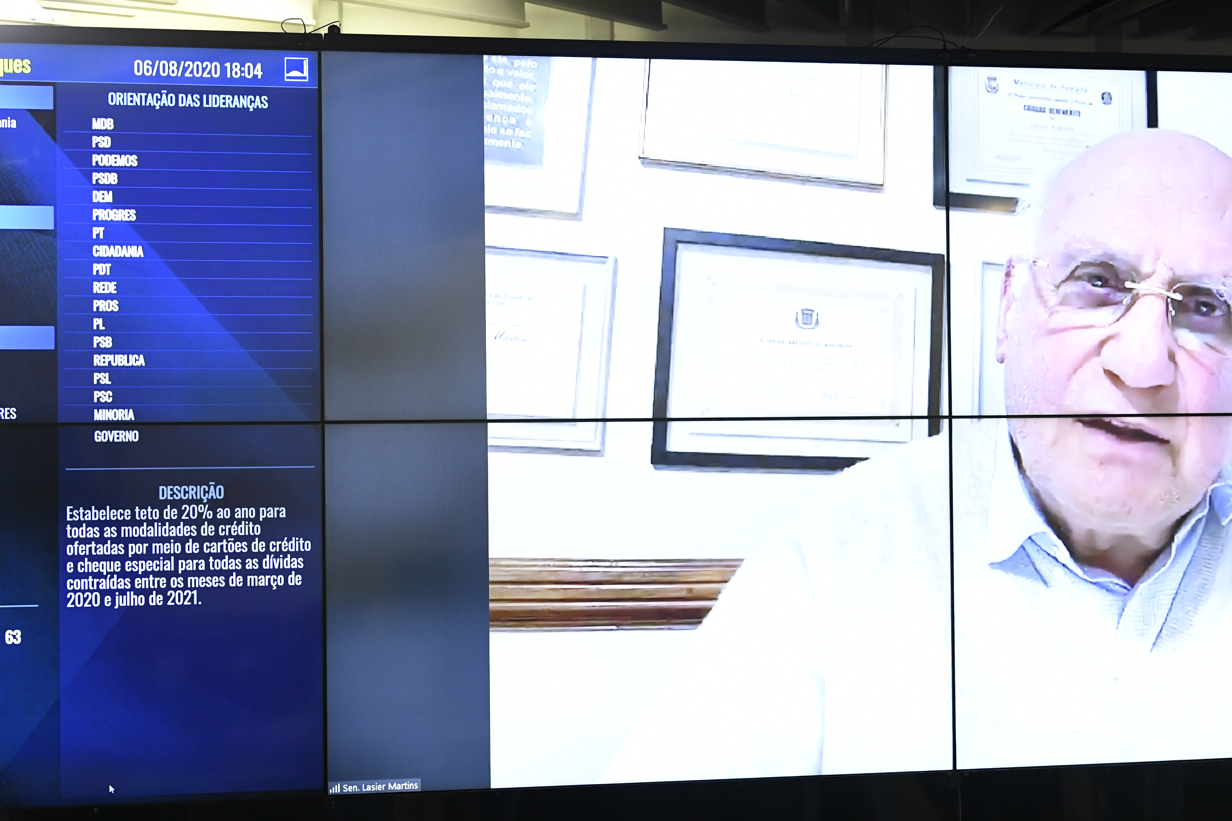 — Cerca de 76 países do mundo estabelecem o limite das taxas de juros dos cartões de crédito. O mundo todo estabelece esse limite, e nós continuamos estabelecendo aqui a usura, a armadilha, a agiotagem oficializada, a exploração sem medida, com taxas de juros exorbitantes que chegam a 395 vezes a taxa Selic. São taxas de juros que vão de 302%, em média, atualmente, a 1.200%. Nós não estamos estabelecendo o tabelamento das taxas de juros – tabelar é diferente de limitar. A concorrência vai se estabelecer abaixo do limite estabelecido. Antes dessa pandemia, 65% das famílias brasileiras já estavam endividadas; e os bancos tiveram lucro, no ano passado, de R$108 bilhões — afirmou Alvaro Dias.