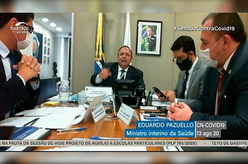 Pazuello listou a distribuição de medicamentos feita pelo ministério, que somou 19,4 milhões de unidades. Somente de cloroquina, foram mais de 5 milhões de comprimidos entregues aos entes federados.