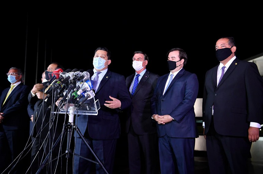 "A retomada do crescimento econômico no pós-pandemia foi tratada no encontro de hoje [quarta-feira] com o presidente Bolsonaro. O Parlamento está disposto para construir as saídas para a crise com responsabilidade fiscal e social. O Congresso não faltará ao Brasil nem aos brasileiros".