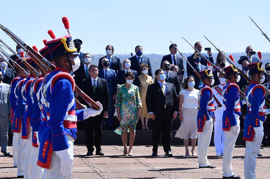 O presidente do Congresso Nacional, Davi Alcolumbre, participou, nesta segunda-feira (7), de solenidade para marcar os 198 anos da Independência do Brasil, em Brasília. Promovido pela Presidência da República, o evento aconteceu em frente ao Palácio da Alvorada, e, por conta da pandemia de covid-19, foi restrito a autoridades convidadas e imprensa, em substituição ao tradicional desfile de 7 de setembro que ocorre anualmente na Esplanada dos Ministérios.
