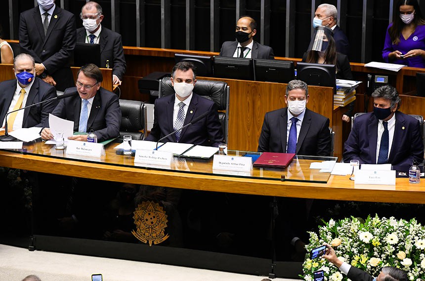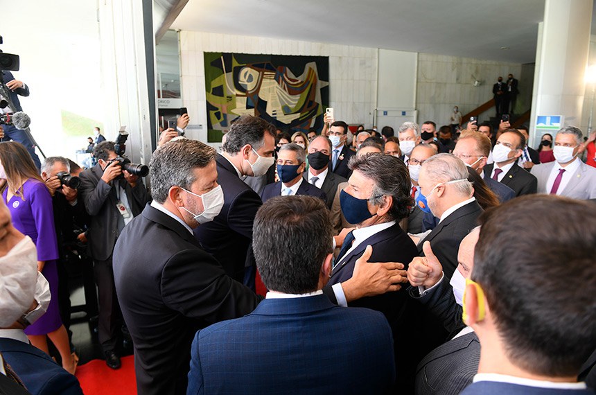 Logo após, os presidentes do Senado e da Câmara se dirigiram ao Salão Negro, onde eram aguardados pelo presidente do Supremo Tribunal Federal, Luiz Fux, pelo procurador-geral da República, Augusto Aras, e por integrantes da Mesa do Congresso, líderes partidários e demais parlamentares.