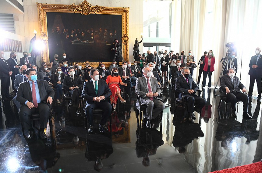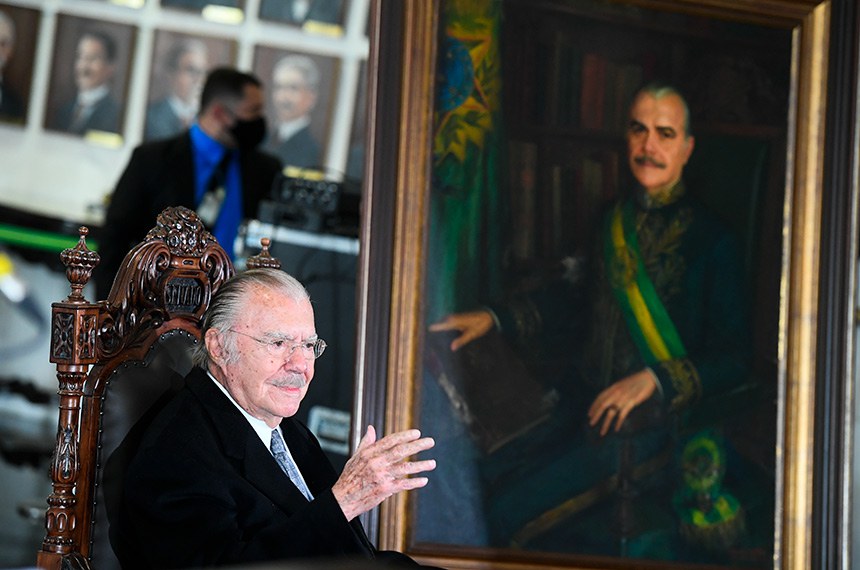 — Trata-se do recebimento de um quadro doado pelo presidente José Sarney ao acervo desta Casa, retratando em óleo sobre tela a figura do iminente homem público do Maranhão, Amapá e do Brasil. Não fosse símbolo inconteste da vocação brasileira em busca de uma democracia adulta e institucionalmente madura, o quadro mostra o nosso respeito por políticos que de fato imprimem marcas indeléveis na nossa história — ressaltou Rodrigo Pacheco.