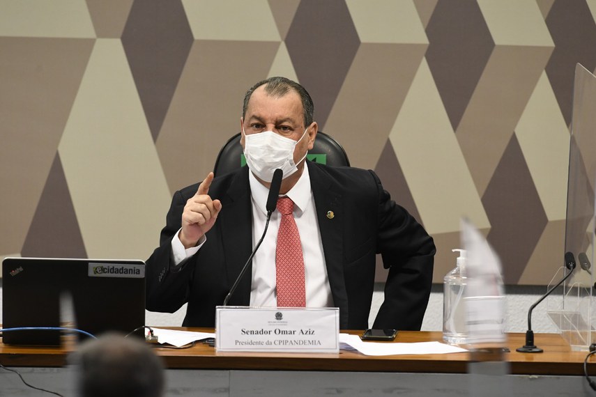 O presidente da CPI da Pandemia, Omar Aziz (PSD-AM), abriu a reunião desta terça-feira (10) da comissão lendo uma nota oficial em protesto contra o desfile de blindados da Marinha realizado na Esplanada dos Ministérios no mesmo dia que a Câmara vai votar proposta do voto impresso. Conforme o documento, o presidente Jair Bolsonaro imagina demonstrar força, mas evidencia fraqueza de alguém que está acuado por investigações de corrupção e pela incompetência administrativa que provoca mortes, fome e desemprego em meio a uma pandemia sem controle.