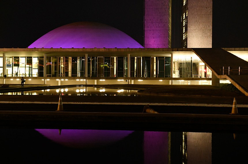 Senado é iluminado de roxo para marcar Dia Mundial da Fibrose Cística
