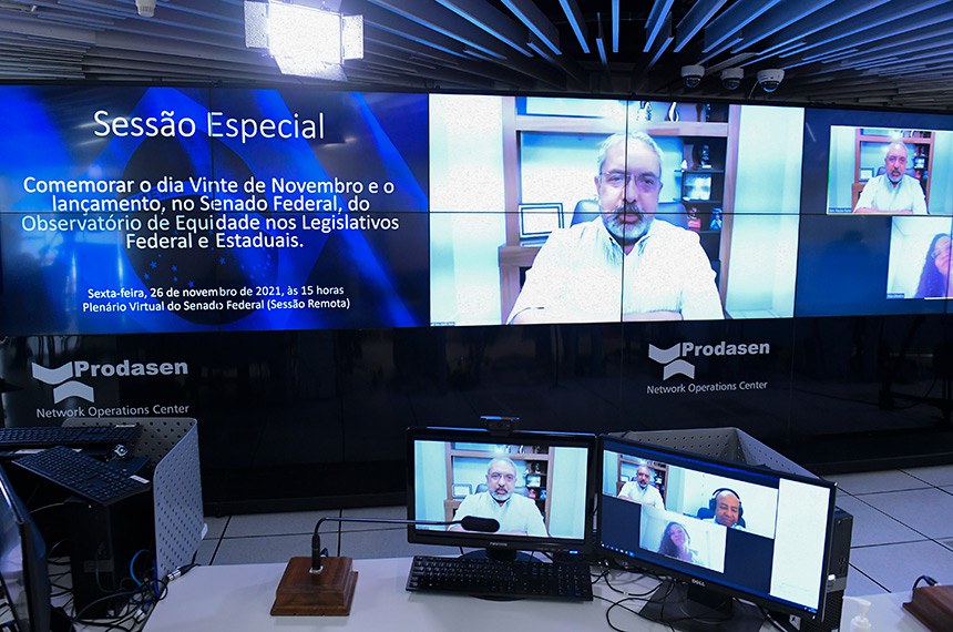 Em sessão especial realizada nesta sexta-feira (26), o Senado comemorou o Dia Nacional da Consciência Negra, celebrado anualmente em 20 de novembro, e promoveu o lançamento do Observatório Equidade no Legislativo, destinado a coletar e sistematizar informações sobre o perfil da representação étnico-racial e de gênero no Congresso Nacional e nas assembleias legislativas estaduais de todo o país.