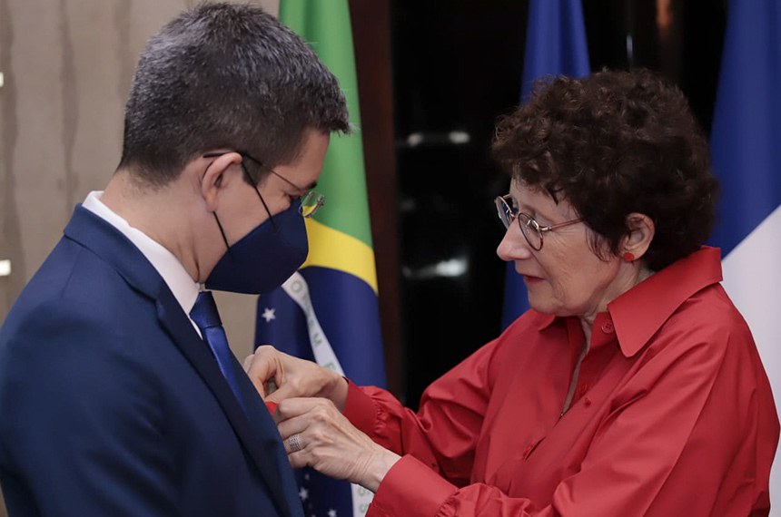 Com a presença do presidente do Senado, Rodrigo Pacheco, o senador Randolfe Rodrigues (Rede-AP) recebeu, no início da noite desta segunda-feira (6), na Embaixada da França, em Brasília, a Legião de Honra — distinção criada por aquele país em 1802. A condecoração, entregue pela embaixadora francesa no Brasil, Brigitte Collet, reconhece os serviços prestados à França ou às causas que esse país defende.