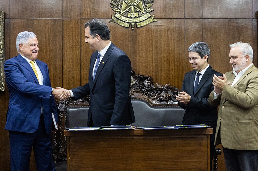 Participaram da cerimônia de assinatura o presidente do Senado, Rodrigo Pacheco; o presidente da comissão especial, senador Randolfe Rodrigues (Rede-AP); a diretora-geral do Senado, Ilana Trombka; o presidente do Grupo Bandeirantes, João Carlos Saad; e Andre Basbaum, diretor de Conteúdo de Jornalismo da emissora.