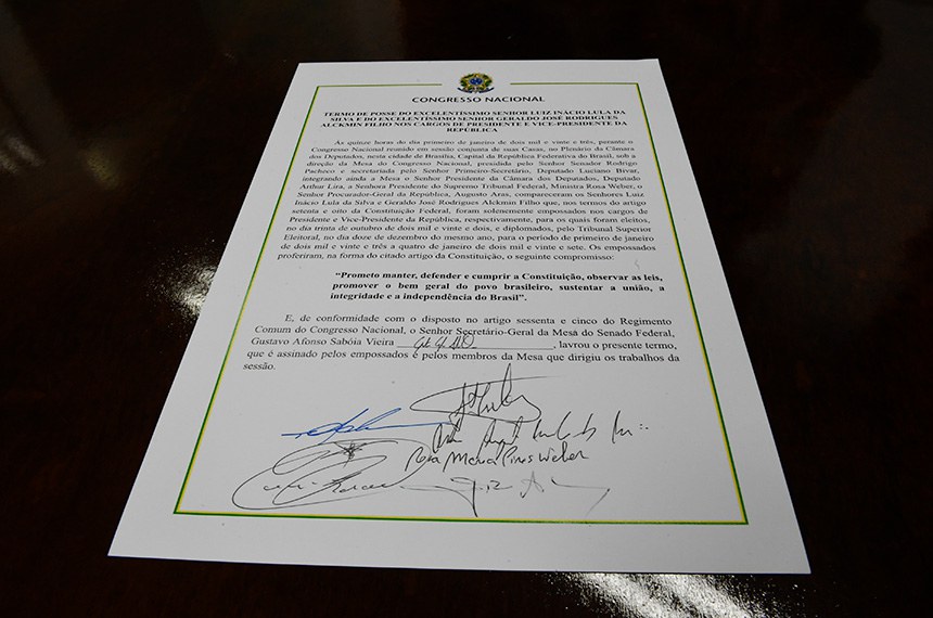 O presidente Luiz Inácio Lula da Silva inaugurou no domingo (1º) o terceiro volume do Termo de Posse, assinado durante a sessão solene do Congresso Nacional que deu início a seu mandato obtido nas urnas em novembro. O livro foi assinado também pelo vice-presidente, Geraldo Alckmin.