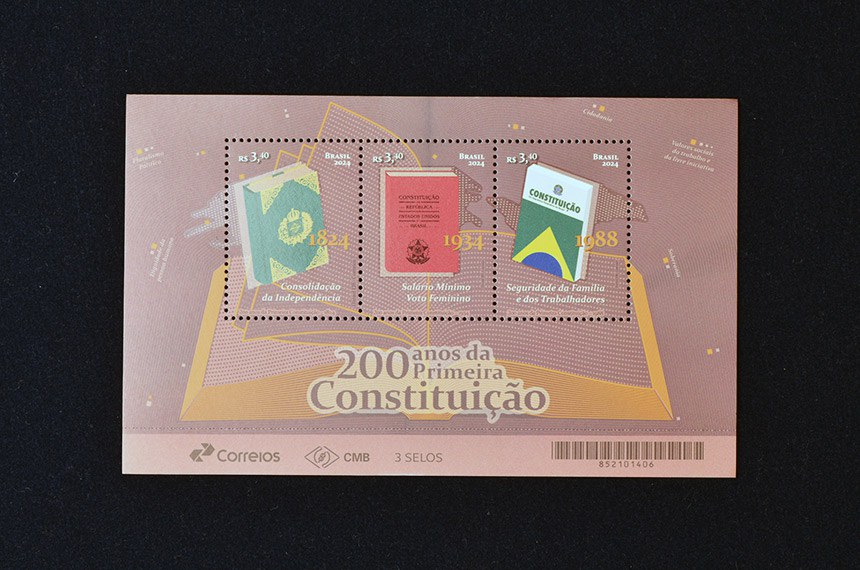 Pacheco e o presidente dos Correios, Fabiano Silva dos Santos, fizeram a obliteração dos selos, ou seja, o carimbo para que esses emblemas não possam ser copiados. Os três selos referentes ao bicentenário do Senado, disse Pacheco, representam os palácios que já abrigaram o Senado: o Palácio Conde dos Arcos, o Palácio Monroe, e o Palácio do Congresso Nacional. Também foram lançados selos referentes às Constituições de 1824, 1934 e 1988.