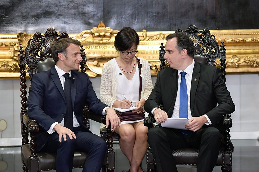 Pacheco agradeceu a visita de Macron e elogiou os acordos e diálogos com o governo brasileiro. O presidente do Senado também convidou o presidente francês para novas visitas ao Congresso futuramente.
