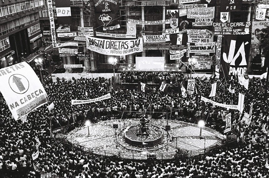 “Em praticamente todas as capitais brasileiras, manifestantes das Diretas Já saíram às ruas para protestar pelo fim da ditadura. No Rio de Janeiro, cerca de 1 milhão de participantes se reuniram. Em São Paulo, mais de 1,7 milhão de manifestantes ocuparam o Vale do Anhangabaú — a maior concentração popular que o Brasil já teve”, registra Wellington Fagundes.