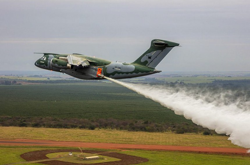 A aeronave KC-390 Millennium da FAB, desenvolvida pela empresa brasileira Embraer, foi utilizada neste ano para auxiliar no combate a incêndios no Pantanal e em São Paulo. O veículo é capaz de projetar cerca de 12 mil litros de água.