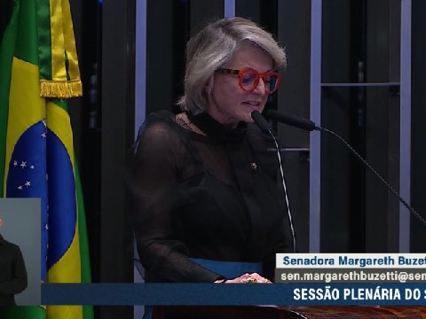 Em apartes, Margareth Buzetti foi saudada pelos senadores Flávio Bolsonaro (PL-RJ), Ciro Nogueira (PP-PI), Efraim Filho (União-PB), Mecias de Jesus (Republicanos-RR), Nelsinho Trad (PSD-MS), Veneziano Vital do Rêgo (MDB-PB), Magno Malta (PL-ES), Eduardo Girão (Novo-CE), Eduardo Braga (MDB-AM), Esperidião Amin (PP-SC), Otto Alencar (PSD-BA), Rogério Marinho (PL-RN), Luis Carlos Heinze (PP-RS), Sérgio Moro (União-PR), Jorge Seif (PL-SC), Izalci Lucas (PL-DF) e Zequinha Marinho (Podemos-PA). E pelas senadoras Professora Dorinha Seabra (União-TO), Tereza Cristina (PP-MS), Teresa Leitão (PT-PE), Augusta Brito (PT-CE), Zenaide Maia (PSD-RN), Jussara Lima (PSD-PI), Soraya Thronicke (Podemos-MS) e Damares Alves (Republicanos-DF).