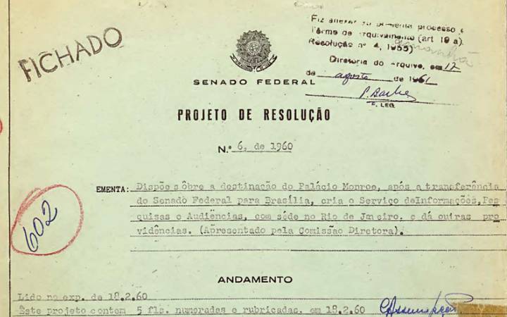 Digitalizados e disponíveis na internet ou preservados e com acesso permitido a visitantes e pesquisadores, documentos sobre a transferência da capital do Brasil do Rio de Janeiro para Brasília são patrimônio histórico do Arquivo do Senado. Saiba como conhecer esses registros importantes da cidade que completa 65 anos de fundação nos próximo dia 21 de abril.