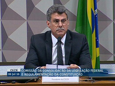 Romero Jucá lê relatório sobre projeto de reforma política elaborado pela Câmara
